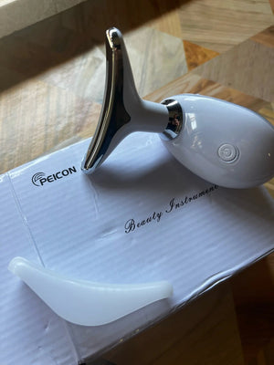 It uses gentle vibrations to stimulate blood flow and relax muscles, enhancing skin appearance and reducing tension.